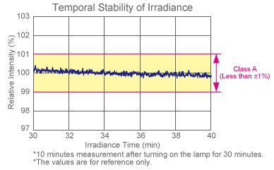 Temporal stability of irradiance (%) </=&plusmn;1 </=&plusmn;3 </=&plusmn;10